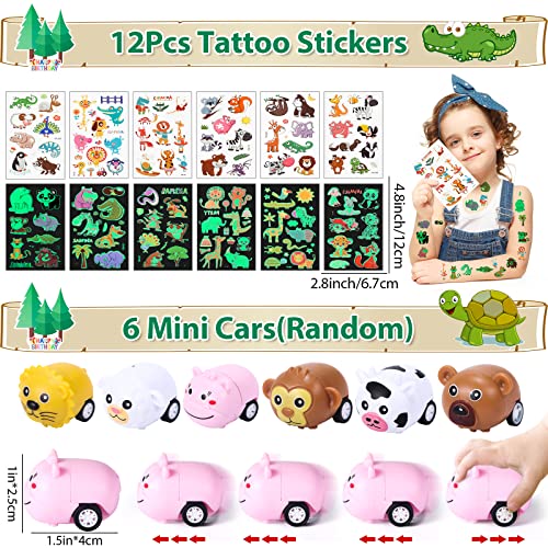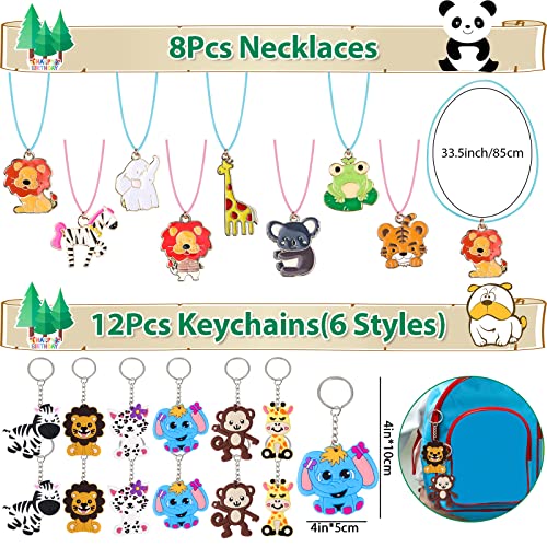 84Pcs Jungle Anniversaire Fête Faveurs Safari Animaux Masques Mini Voiture Jouets Collier Bracelets Claquer Porte Clés…