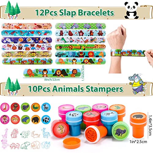 84 Pièces Jungle Safari Anniversaire Fête Cadeaux – Vous obtiendrez 12 Mini Pull Back Voiture Jouets de animaux, 12 masques d’animaux, 12 Slap Bracelet à Claquer, 12 colliers de safari, 12 Porte-clés de la jungle, 12 Sceau de animaux, 12 D’autocollants de d’animaux lumineux, 12 Sacs en papier cadeaux animales. Parfait pour les enfants garçons, les remplisseurs de pinata de sac de fête d’anniversaire sur thème des animaux sauvages, pour 12 enfants lors de fêtes d’animaux.