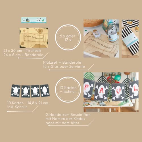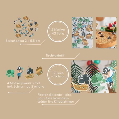 Décoration d’anniversaire pirate – 165 pièces – Boîte à thème – Anniversaire de pirate – Fête durable sans plastique