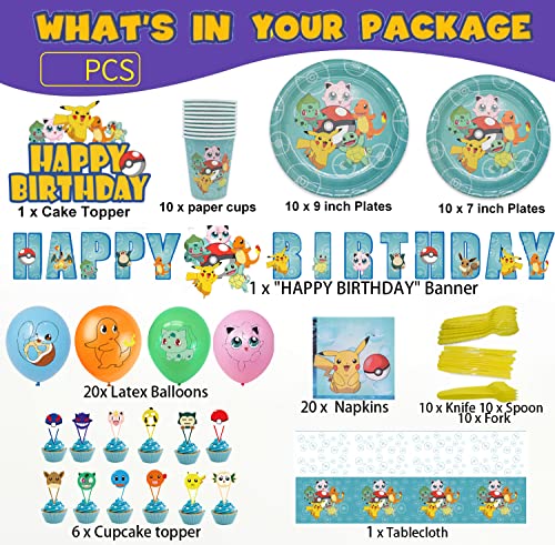 ⚡Unique Design: P0kem0n Theme Design est le plus populaire auprès des enfants de tous âges! Avec de jolis motifs de pikachu de bandes dessinées, nos assiettes et nos décorations sont absolument magiques.