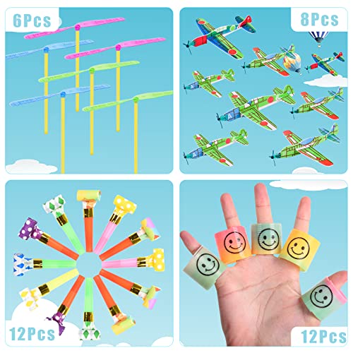 🎁128 jouets de fête : Nos cadeaux d’anniversaire pour enfants incluent 50 gemmes fluorescentes, 12 petites voitures à tirer, 12 dragons à bulles, 12 petits palmiers, 12 cercles arc-en-ciel, 10 bracelets à pression, 8 petits avions. Libellule en bambou * 6, autocollants * 6.
