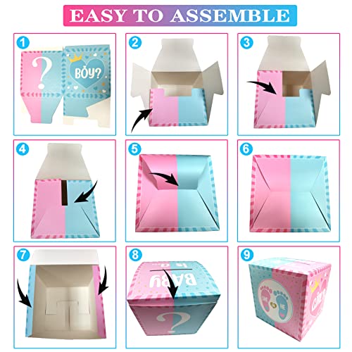 🎉【Design mignon et réutilisable】Ces boîtes et cartes bleues et roses sont peintes avec des jupes, des empreintes de pieds, des motifs d’étoiles, des points d’interrogation, elles sont belles et attrayantes. La boîte de révélation du sexe est fabriquée en papier cartonné dur et durable, fiable et réutilisable.