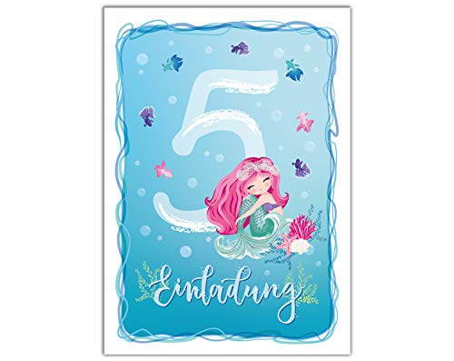 Specification: JuNa-Experten Lot de 12 cartes d’invitation pour 5e anniversaire d’enfant Motif sirène Avec 12 enveloppes et 12 sachets…