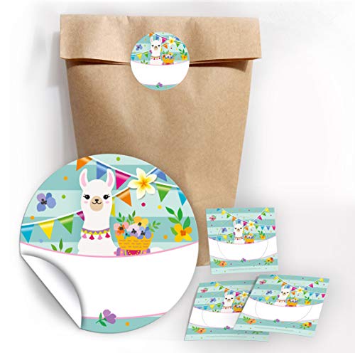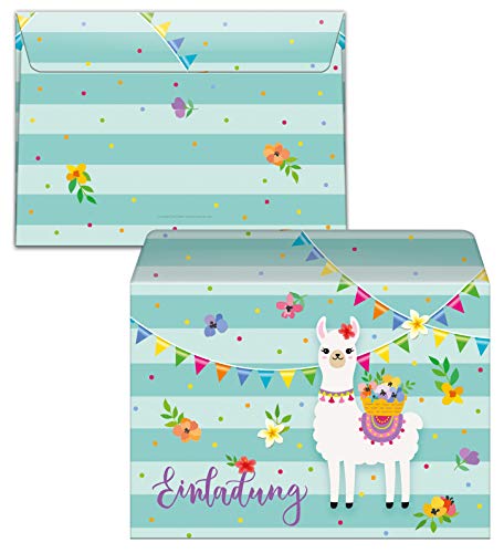 JuNa-Experten Lot de 12 cartes d’invitation pour anniversaire d’enfant fille Lama avec 12 enveloppes, 12 sachets et 12…