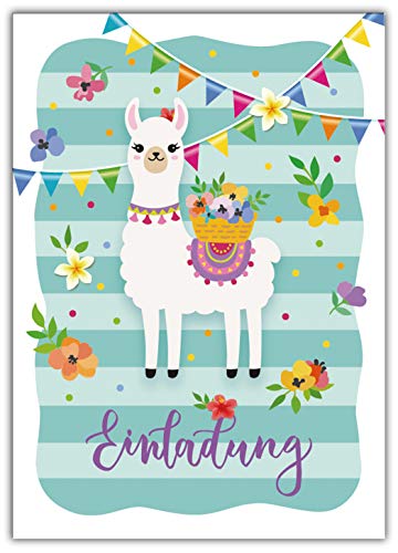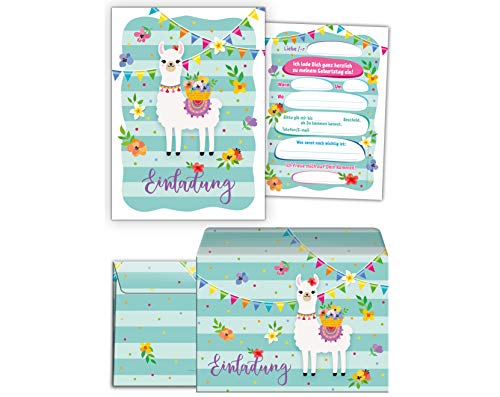 Specification: JuNa-Experten Lot de 12 cartes d’invitation pour anniversaire d’enfant fille Lama avec 12 enveloppes, 12 sachets et 12…