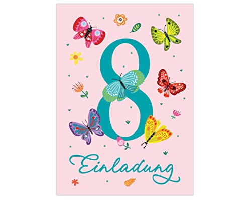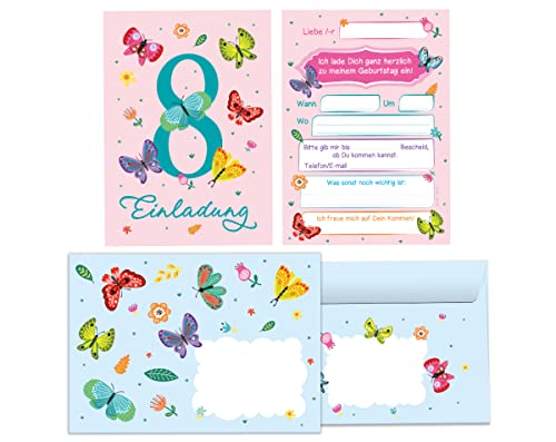 Specification: Junapack Lot de 12 cartes d’invitation pour 8e anniversaire d’enfant Motif papillons avec 12 enveloppes et 12 sachets…