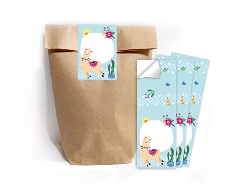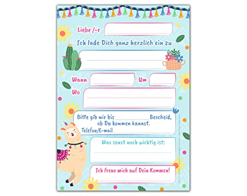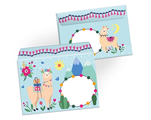 Junapack Lot de 12 cartes d’invitation pour anniversaire d’enfant Lama avec 12 enveloppes, 12 sachets et 12 autocollants