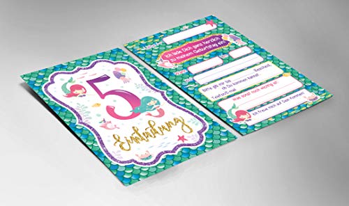 Specification: Junaversum Lot de 12 cartes d’invitation avec 12 enveloppes pour 5e anniversaire d’enfant fille sirène