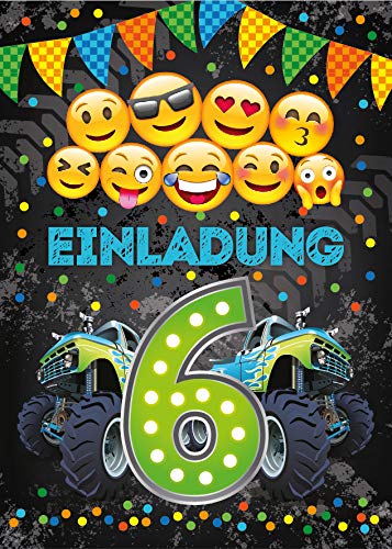 Specification: Junaversum Lot de 12 cartes d’invitation avec 12 enveloppes pour 6e anniversaire d’enfant Motif monstre camion Vert