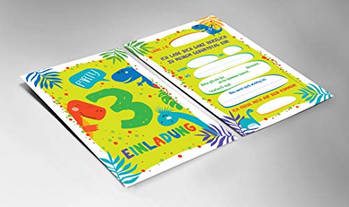 Junaversum Lot de 12 cartes d’invitation pour 3e anniversaire d’enfant garçon Motif dinosaure
