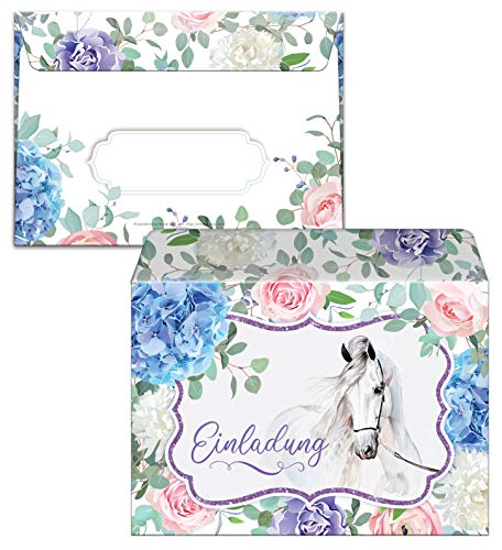 Specification: Junaversum Lot de 12 cartes d’invitation pour 9e anniversaire d’enfant fille cheval avec 12 enveloppes, 12 sachets et 12…