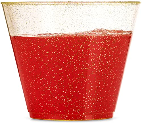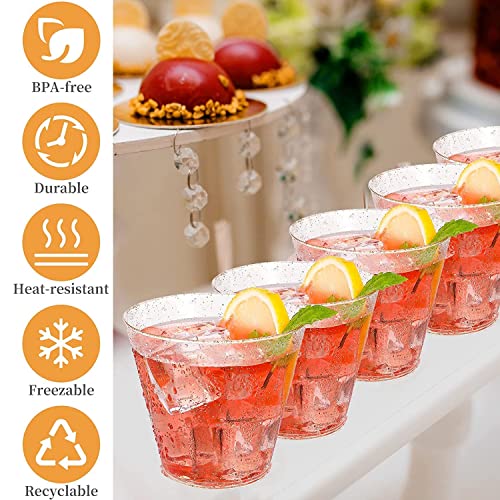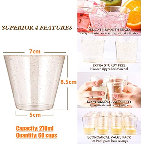 KAHEIGN 60Pcs 270ml Gobelets en plastique à paillettes dorées ont une apparence élégante, adaptés pour une utilisation dans les mariages, les réceptions, les fêtes, les vacances, les événements de restauration, les anniversaires, les baby showers et toutes les occasions.