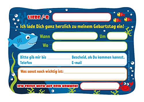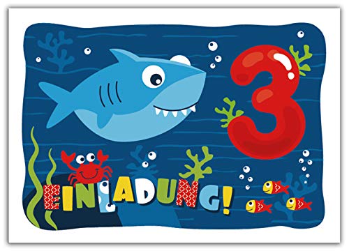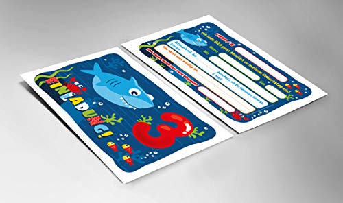 Lot de 12 cartes d’invitation avec 12 enveloppes pour 3ème anniversaire d’enfant garçon fille requin