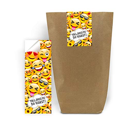 Les sacs de fête mesurent 14 x 22 cm. Les autocollants mesurent 5,2 x 14,8 cm.