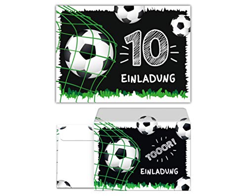 Lot de 12 cartes d’invitation pour 10e anniversaire d’enfant garçon Football avec 12 enveloppes, 12 sachets et 12…