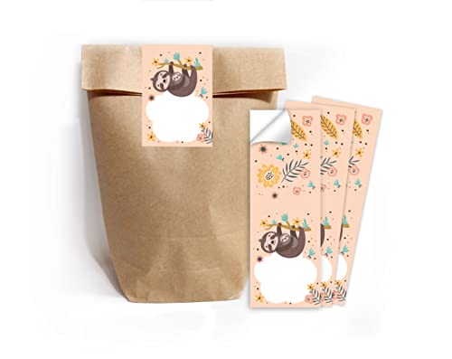 Les sacs de fête mesurent 14 x 22 cm. Les autocollants mesurent 5,2 x 14,8 cm.