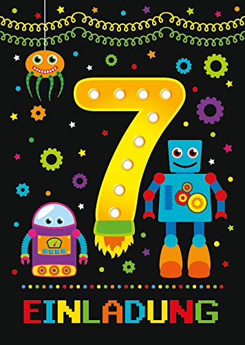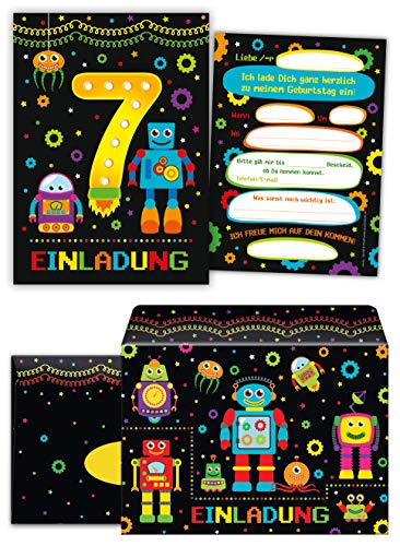 Specification: Lot de 12 cartes d’invitation pour 7e anniversaire d’enfant – 7e anniversaire – Garçon Robot – 12 enveloppes – 12…