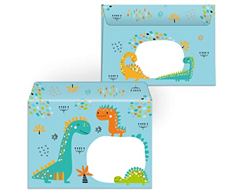 Lot de 12 cartes d’invitation pour anniversaire d’enfant garçon dinosaure avec 12 enveloppes et 12 sachets Naturel