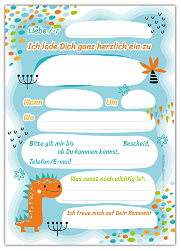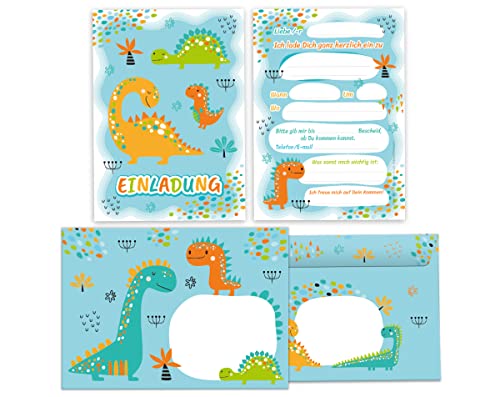 Specification: Lot de 12 cartes d’invitation pour anniversaire d’enfant garçon dinosaure avec 12 enveloppes et 12 sachets Naturel