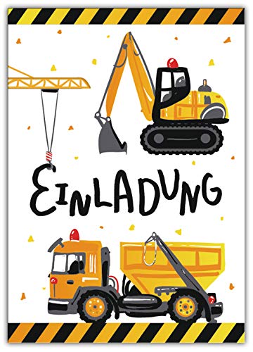Lot de 12 cartes d’invitation pour anniversaire d’enfant Motif chantier de chantier excavatrice avec 12 enveloppes, 12…