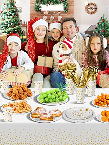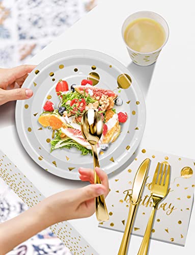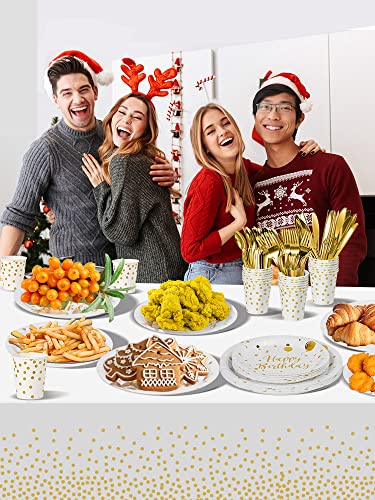 Nkaiso 141pcs Blanc Or Anniversaire Party Vaisselle,Kit Vaisselles Anniversaire Assiette Dîner Papier Tasse Serviette…