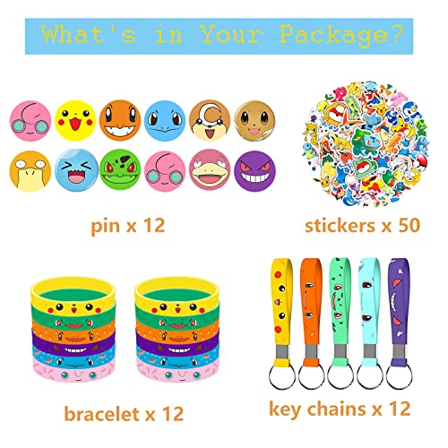 【86 Pièces】Vous recevrez 12 bracelets en silicone, 12 porte-clés, 12 épingles, 50 autocollants. Il peut être offert à la famille et aux amis et constitue un souvenir d’anniversaire parfait pour les enfants.