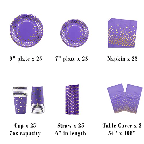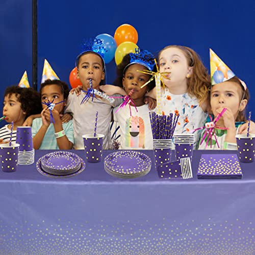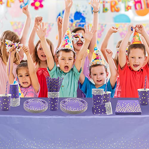 Gagnez du temps : vaisselle violette d’anniversaire sans lavage, facile à nettoyer après la fête, pratique et sans effort à nettoyer, de sorte que vous avez plus de temps pour profiter de la fête
