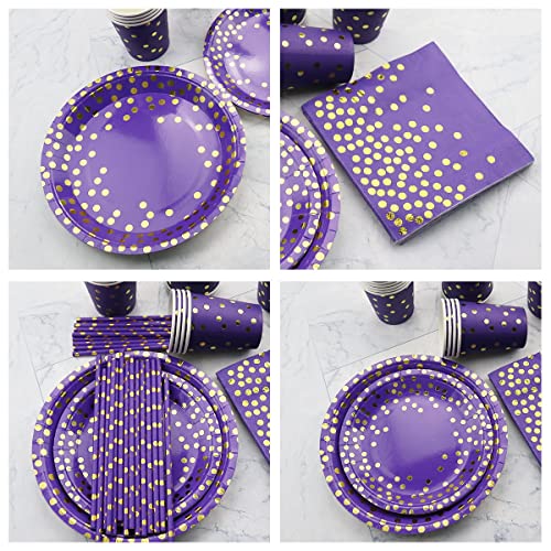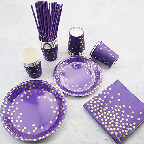 Ywediim Ensemble de Vaisselle de fête Violet et doré – Assiettes, gobelets, Serviettes, nappes, pailles – pour Mariage…