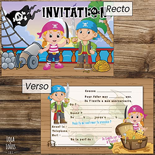Specification: 10 cartes invitation anniversaire en Français • 10 enveloppes • Pirates, Chasse au Trésor • Pour inviter filles et…