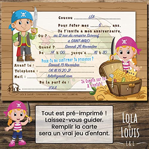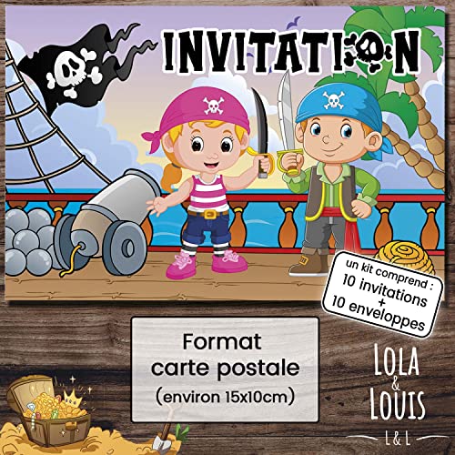 10 cartes invitation anniversaire en Français • 10 enveloppes • Pirates, Chasse au Trésor • Pour inviter filles et…