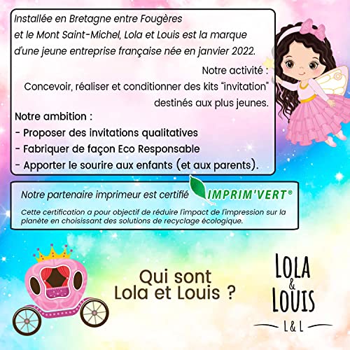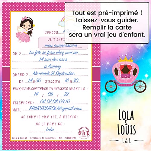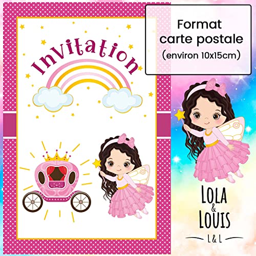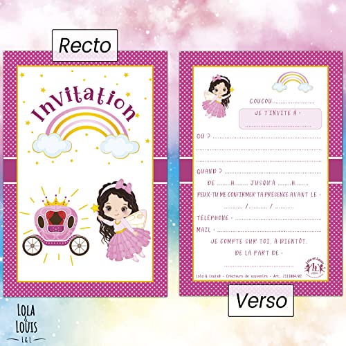 Specification: 10 cartes invitation anniversaire fille • 10 enveloppes • Thème Princesse, Carrosse, Arc en ciel • Pour inviter filles…