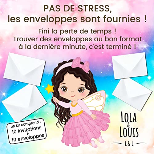 10 cartes invitation anniversaire fille • 10 enveloppes • Thème Princesse, Carrosse, Arc en ciel • Pour inviter filles…