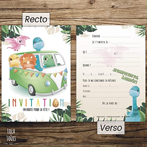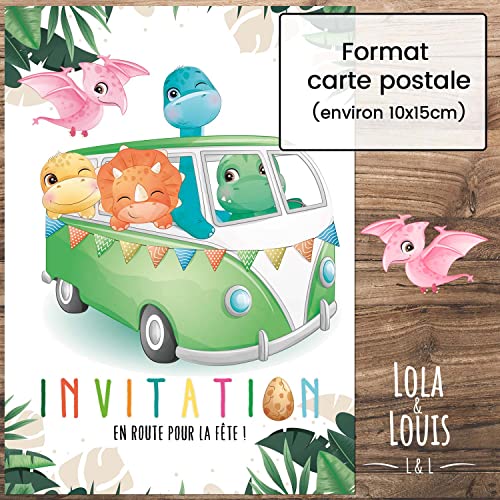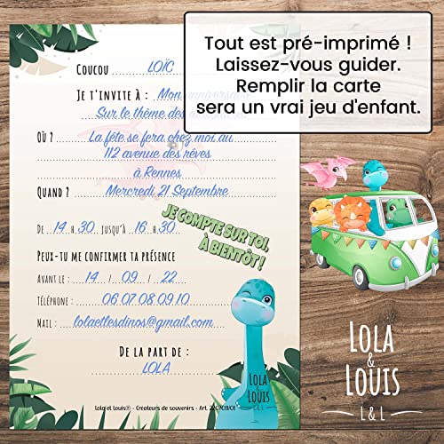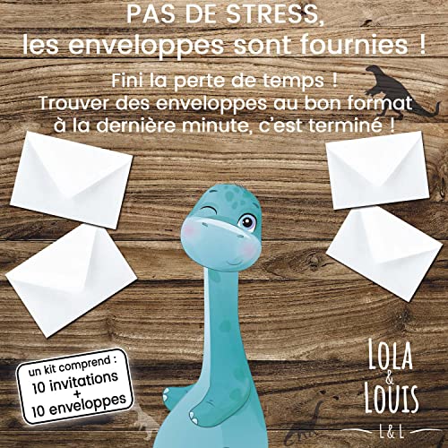 10 cartes invitation anniversaire en Français • 10 enveloppes • Thème dinosaure, Tropical, Dinos Combi • Pour inviter…