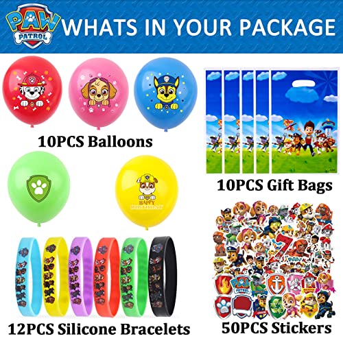 【Paw Dog Patrol Mini Set】 : Notre forfait comprend: 12 bracelets en silicone, 10 Sacs Cadeaux PawDogPatrol, 10 Ballons, 50 mini autocollants (autocollants Paw Dog Patrol au hasard) Fournissez de jolies décorations et des cadeaux exquis.
