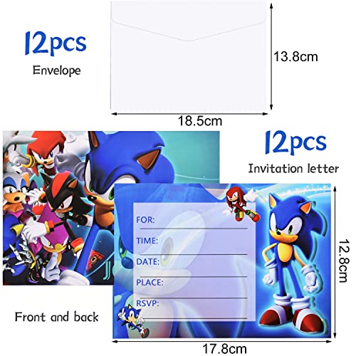 【12 Cartes D’invitation】Vous recevrez 12 carte Sonic invitation anniversaire (quatre styles) + 12 enveloppes, assez pour inviter des invités à la fête, c’est une invitation d’anniversaire parfaite.