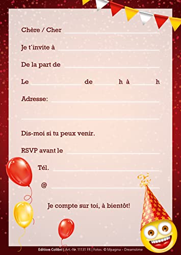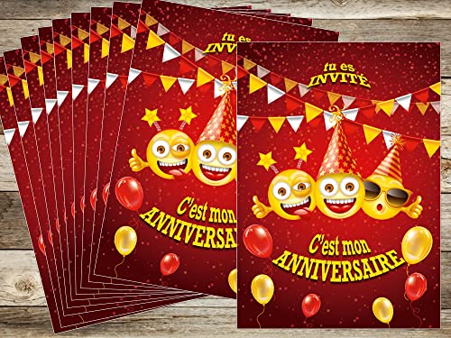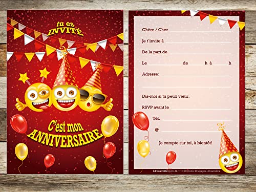 Edition Colibri C’est mon anniversaire 10 Cartes d’invitation avec des smileys drôle en Français, pour un anniversaire d…