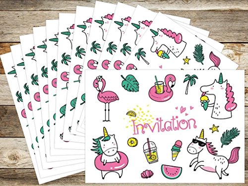 10 cartes d’invitation à une fête de piscine pour un anniversaire d’enfant ou pour une fête avec licorne et flamant