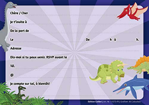 Edition Colibri (11075 FR Lot de 10 Cartes d‘invitation DINOSAURES en Français pour un anniversaire d‘enfant ou pour une…