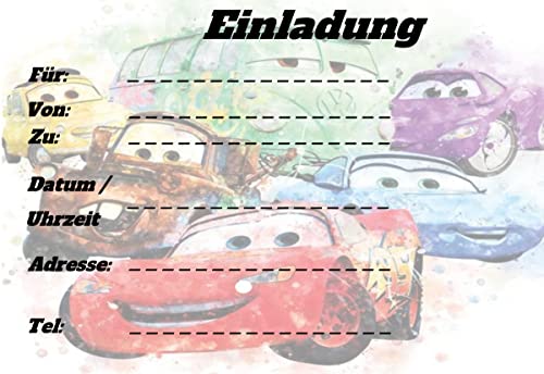 ich Lot de 12 cartes d’invitation et 12 enveloppes pour anniversaire, fête et anniversaire d’enfant Disney Pixar Cars n…