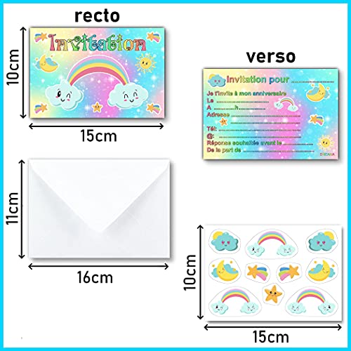 🌈Un pack d invitation TOUT INCLUS sur le thème du ciel pour votre enfant et ses invites : carton invitation (Quantité 10) + enveloppe (Quantité 10) + OFFERT planche de 10 stickers (Quantité 1) 🌈