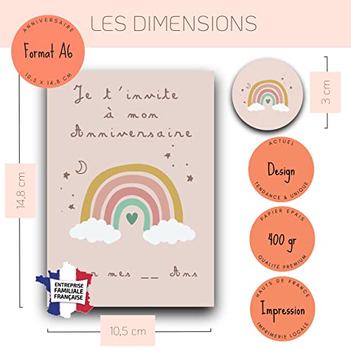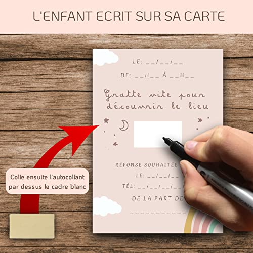🌈 KIT CREATIF TOUT INCLUS 🌈: 10 cartons d’invitation sur le thème Arc En Ciel, associés à 10 enveloppes, 10 stickers Arc En Ciel à coller sur celles-ci ainsi que 10 autocollants à gratter pour dissimuler le lieu.