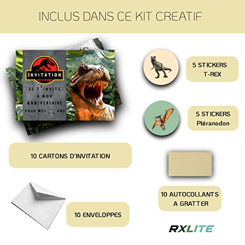 RXLITE NOUVEAUTE KIT CREATIF DE 10 CARTES D’INVITATION ANNIVERSAIRE A GRATTER THEME DINOSAURE JURASSIC PARK EN FRANCAIS…