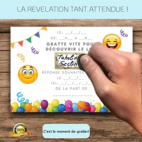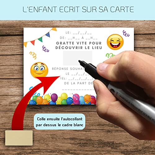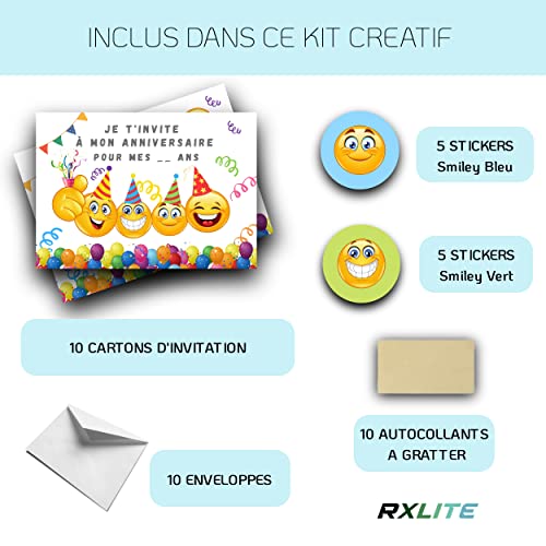 RXLITE NOUVEAUTE KIT CREATIF DE 10 CARTES D’INVITATION ANNIVERSAIRE A GRATTER THEME SMILEY EN FRANCAIS: 10 CARTES, 10…