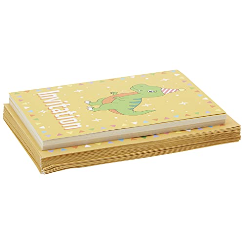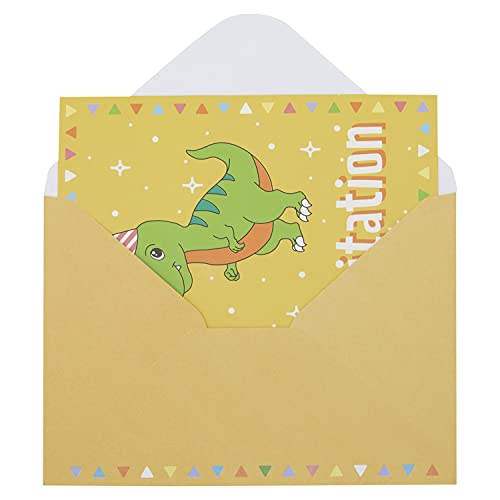 Specification: Paquet de 24 Cartes d’Invitation d’Anniversaire à Remplir avec un Mignon Design de Dinosaure et Enveloppes Jaunes…