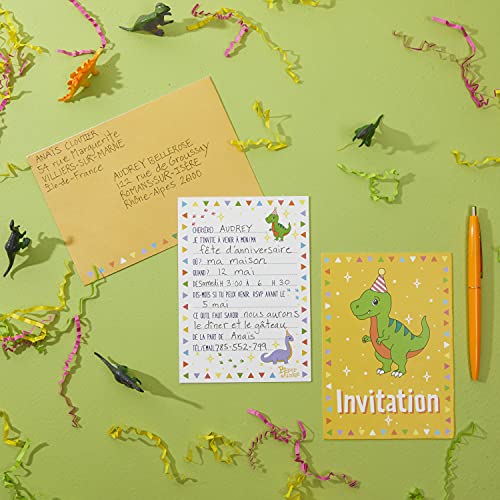 Paquet de 24 Cartes d’Invitation d’Anniversaire à Remplir avec un Mignon Design de Dinosaure et Enveloppes Jaunes…