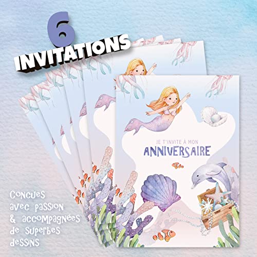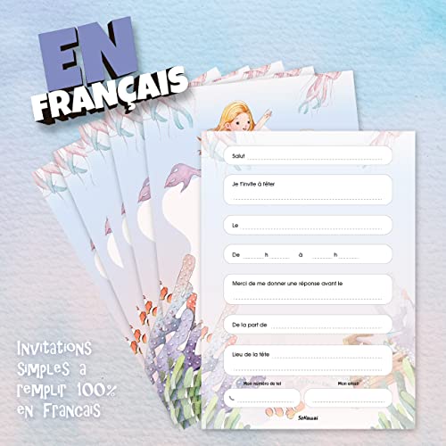 Specification: SoKawaï – Lot de 6 invitations anniversaire en Français + 6 enveloppes | Thème sirènes | Fête pour les enfants