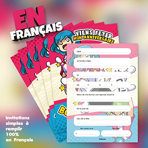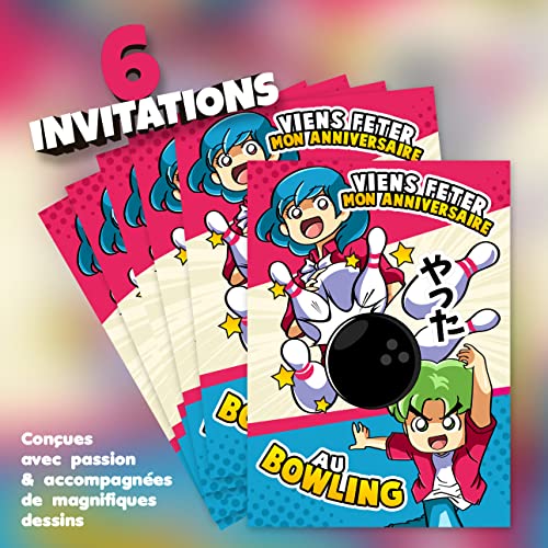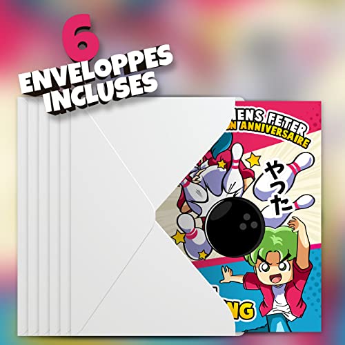 Specification: SoKawaï – Set de 6 cartes invitation anniversaire en Français + 6 enveloppes | Thème Bowling | Fête pour les enfants