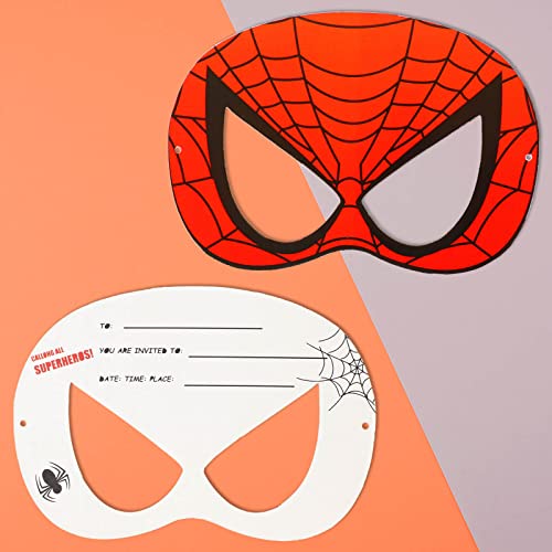 Invitation de style masque : Vous recevrez 12 invitations en forme de masque de spider man avec enveloppes. Convient pour les filles et les garçons.